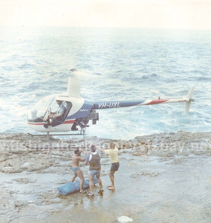 A world probable world first was my nephew Dave Eisenberg’s 132 lb Yellowfin being air lifted off Devils Gorge (which has a very precarious access) by a helicopter! I must admit to being behind getting the chopper.